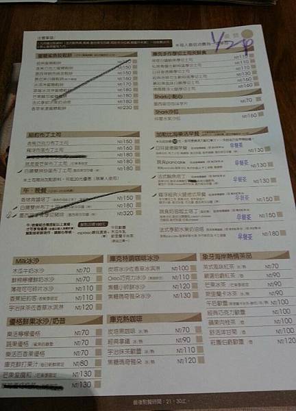 店內的菜單